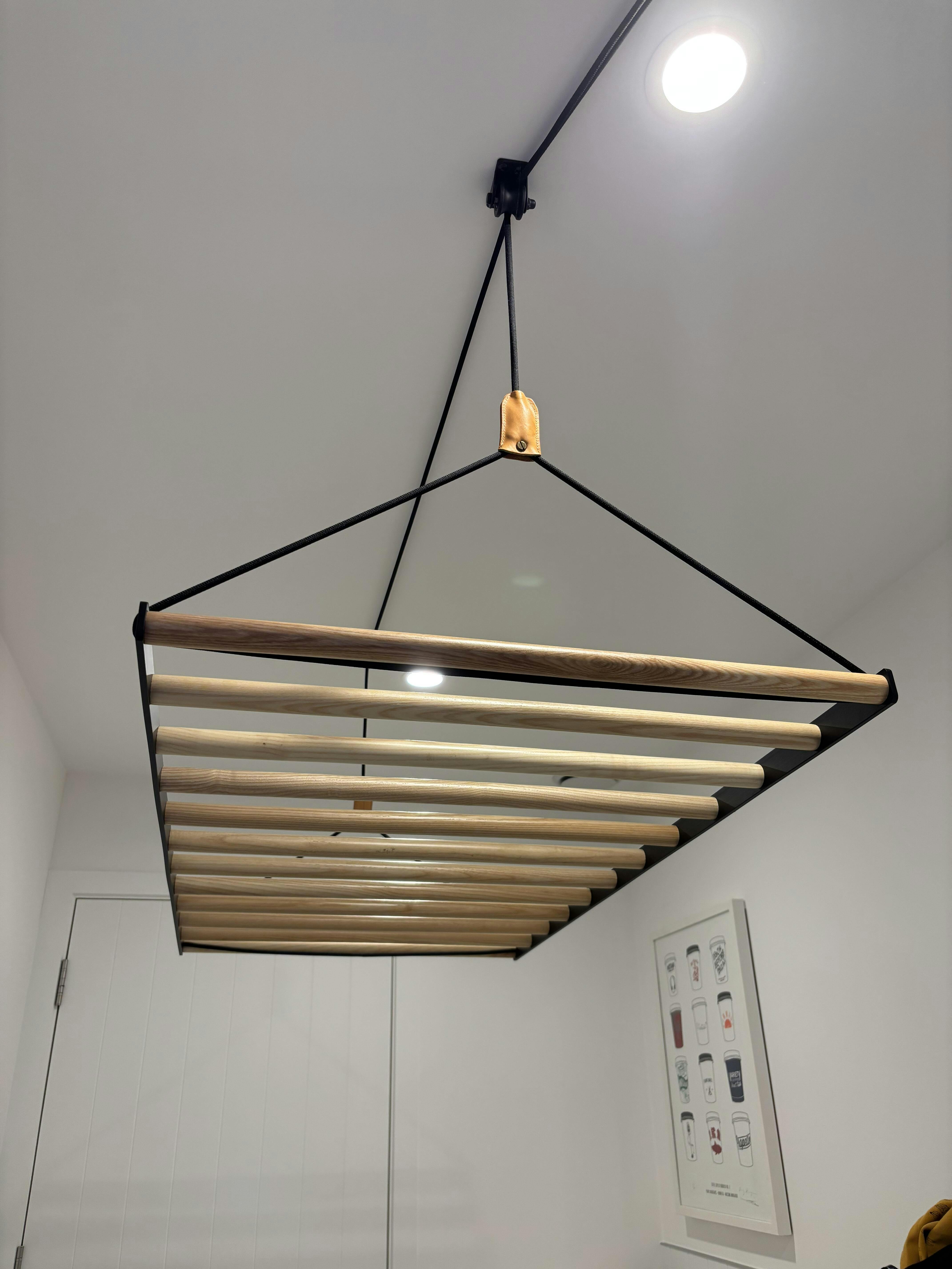 Depending on where you are in the world, the Hanging Drying Rack could also be known as a clothes dryer, a clothesline, a washing line, a clothes airer, a pulley maid, or a laundry maid.