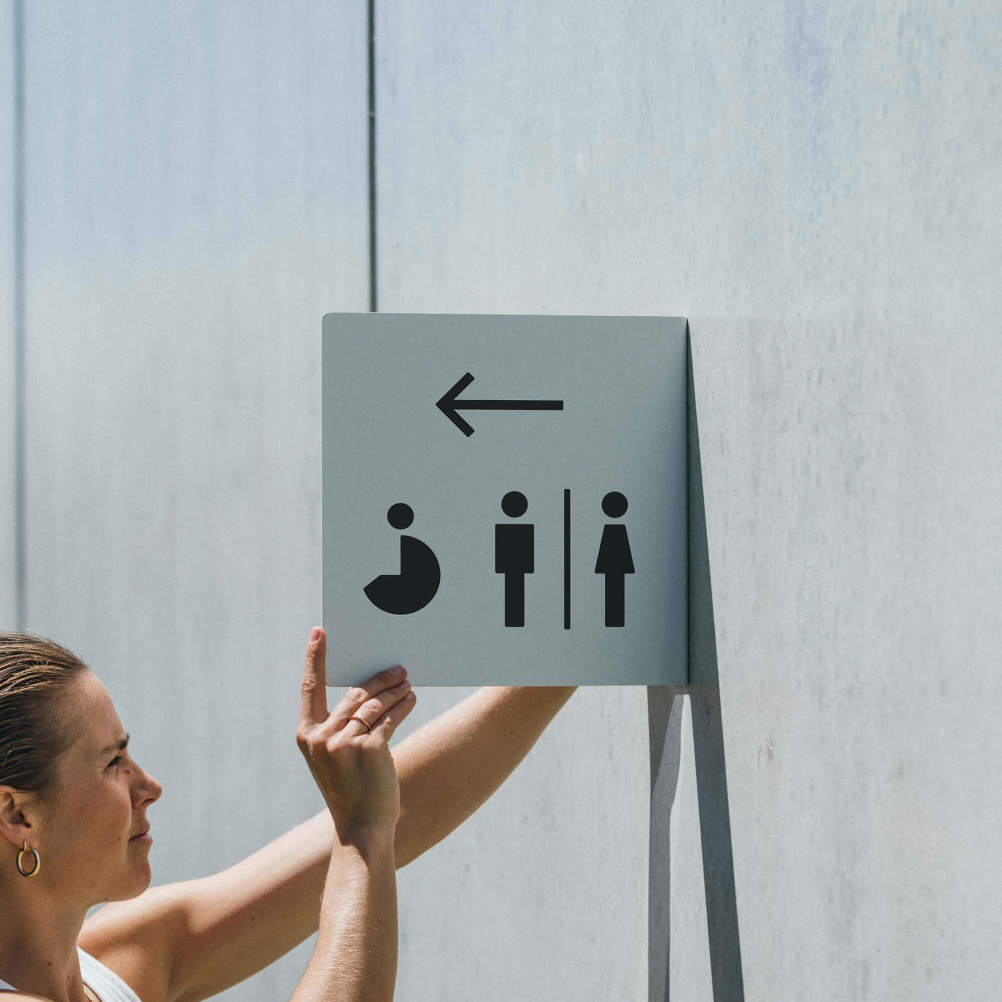 This curved blade sign is one of seven different restroom sign shapes and sizes in the Blade Sign Range. For more storefront signage, take a look at our range of Wall Signs.